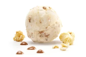 .Playful, rich, and wildly addictive. The base is a smooth, buttery caramel gelato—deeply sweet with a toasted sugar warmth—lifted by a subtle hit of sea salt. Folded through are crunchy pieces of caramel-coated popcorn, adding pops of texture